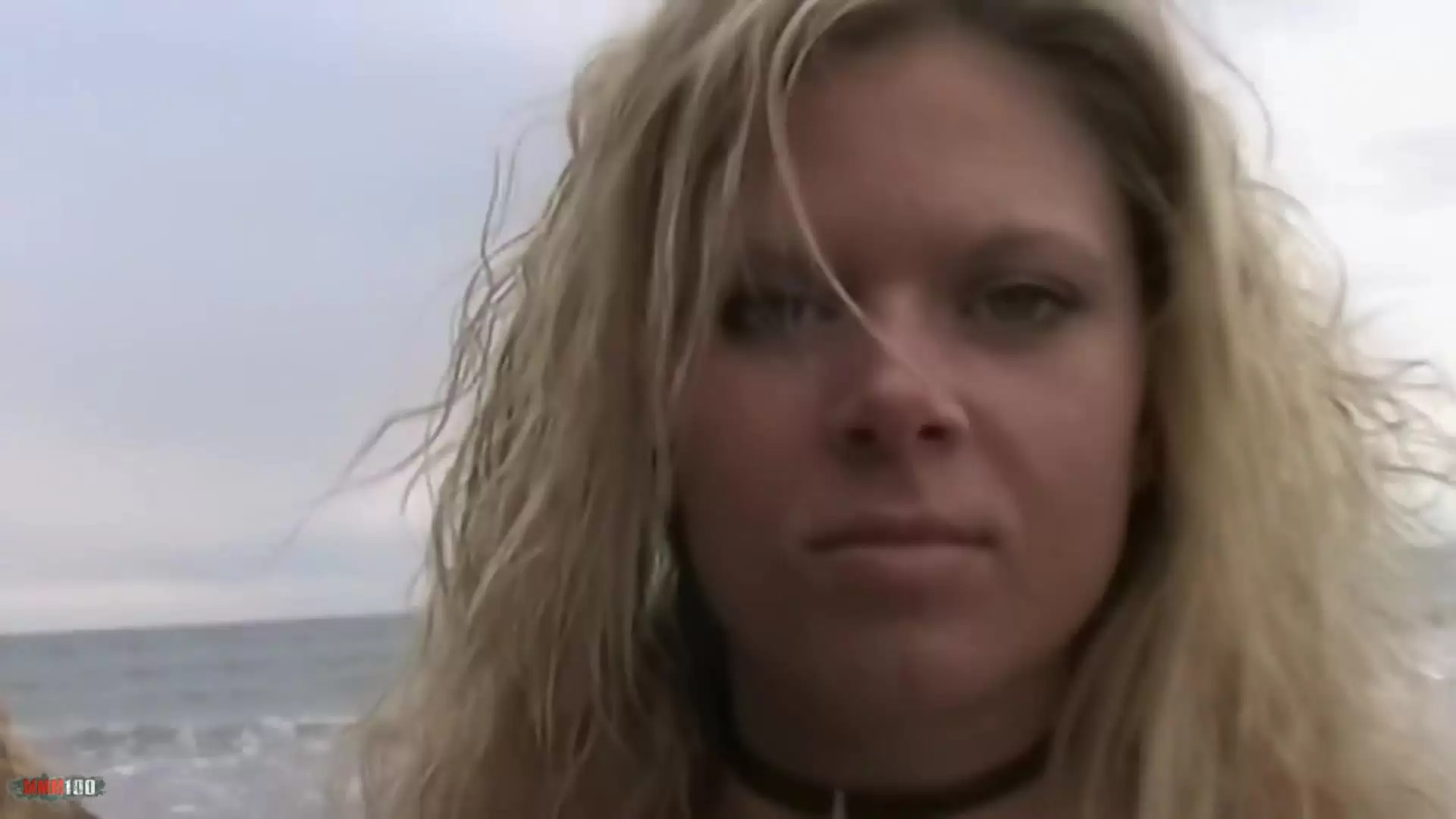 Electra : La ravissante blonde à gros seins Electra fait un strip en bord de mer
