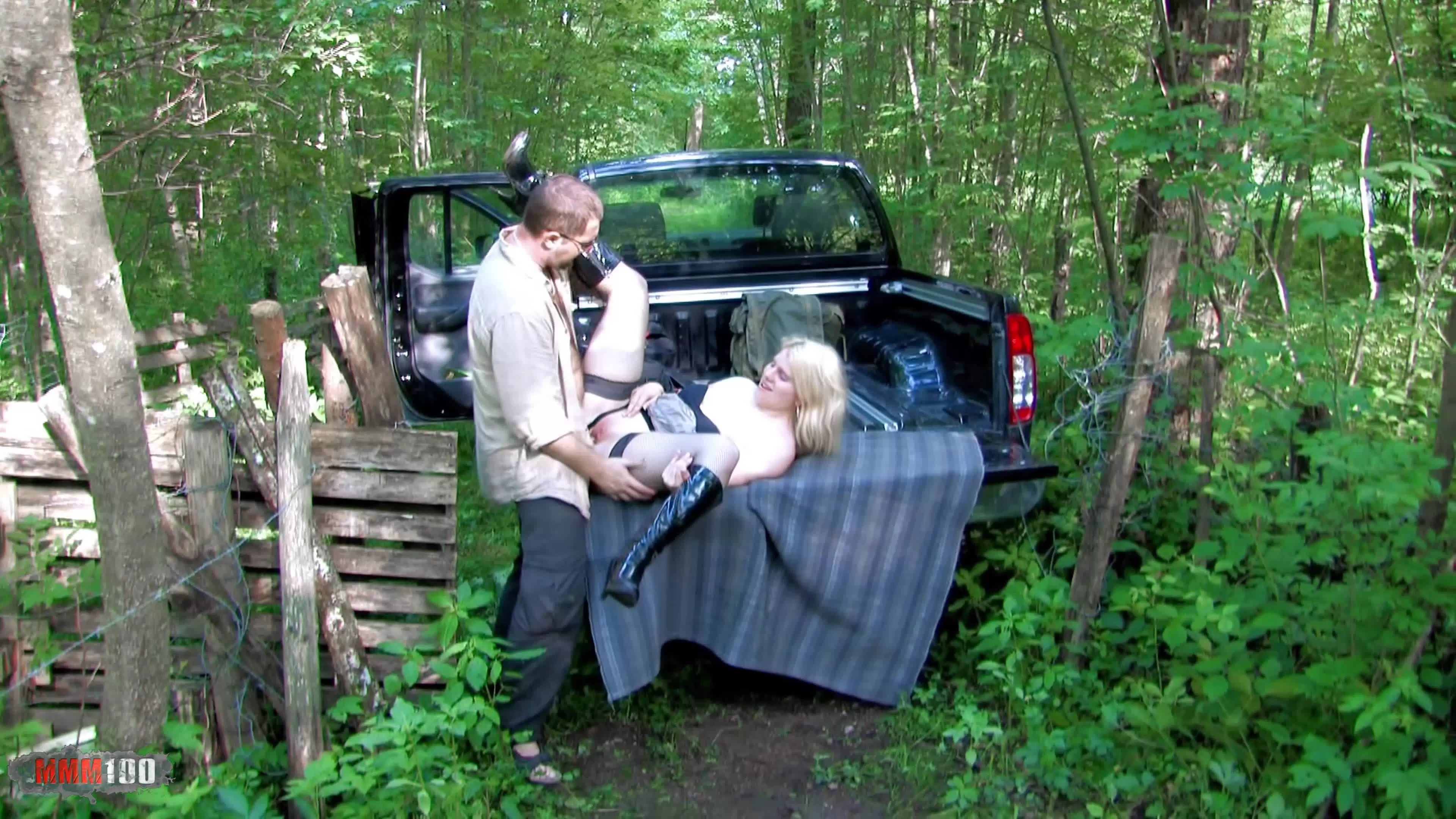 Ce soir nous allons découvrir ensemble l'une des nombreuses qualités du 4x4 : La pêche à la cochonne ! Un bon 4x4 vous permet de vous faire remarquer de la dite cochonne et de lui proposer une ballade en forêt. Belle prise ce jour là, une jolie blondinnette bien allumeuse qui devrait vous faire bander en un coup d'oeil. Et c'est donc parti pour un rodéo en forêt ! La petite blonde se fait secouer sur les chemins accidentés et va docilement se laisse monter dans le grand espace interieur de votre tout terrain. La chaudasse va commencer par se coller votre grosse queue au fond de le gorge et vous pomper aussi fort que ne le fait votre moteur, puis elle va vous montrer sa petite chatte toute rose de blondinnette. Vous y plongerez vos doigts et grace à une grande dexterité vous allez la faire gicler sur vos siège en cuir ! Un autre atout du 4x4 version pick-up est la grande flateforme arrière qui offre un espace idéale pour pouvoir enfourner votre blonde. Vous l'allongez alors sur le dos et après l'avoir bien lubrifiée, vous allez lui déserez le joint de culasse qu'elle a si étroit. La petite cochonne va hurler son plaisir en pleine nature pendant qu'elle se fait allègrement sodomiser. Les plaisirs de la baise au plein air ...
